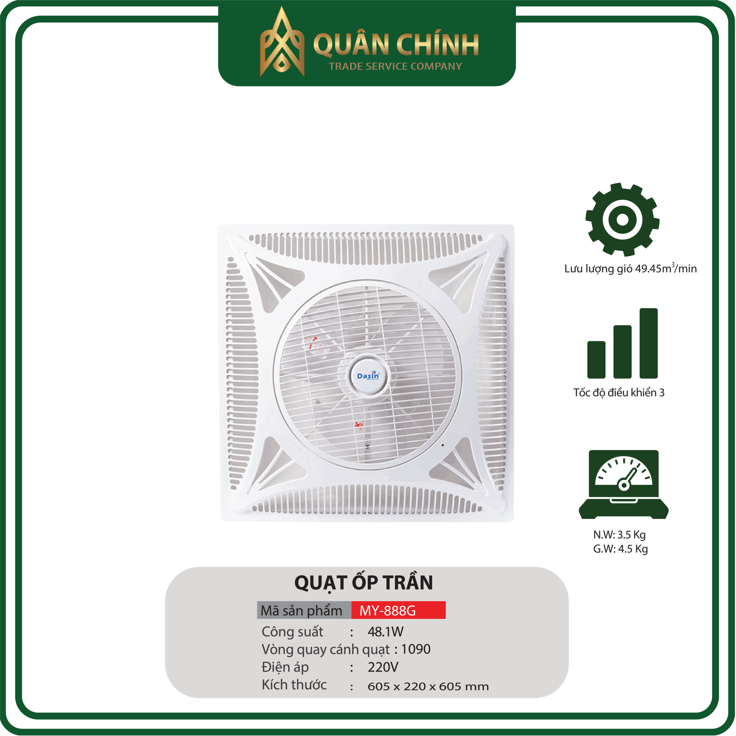Với lưu lượng gió 69.45 m3/phút Quạt ốp trần MY – 888G mang lại luồng không khí sạch, ổn định đảm bảo cho sức khỏe, duy trì không khí trong làn