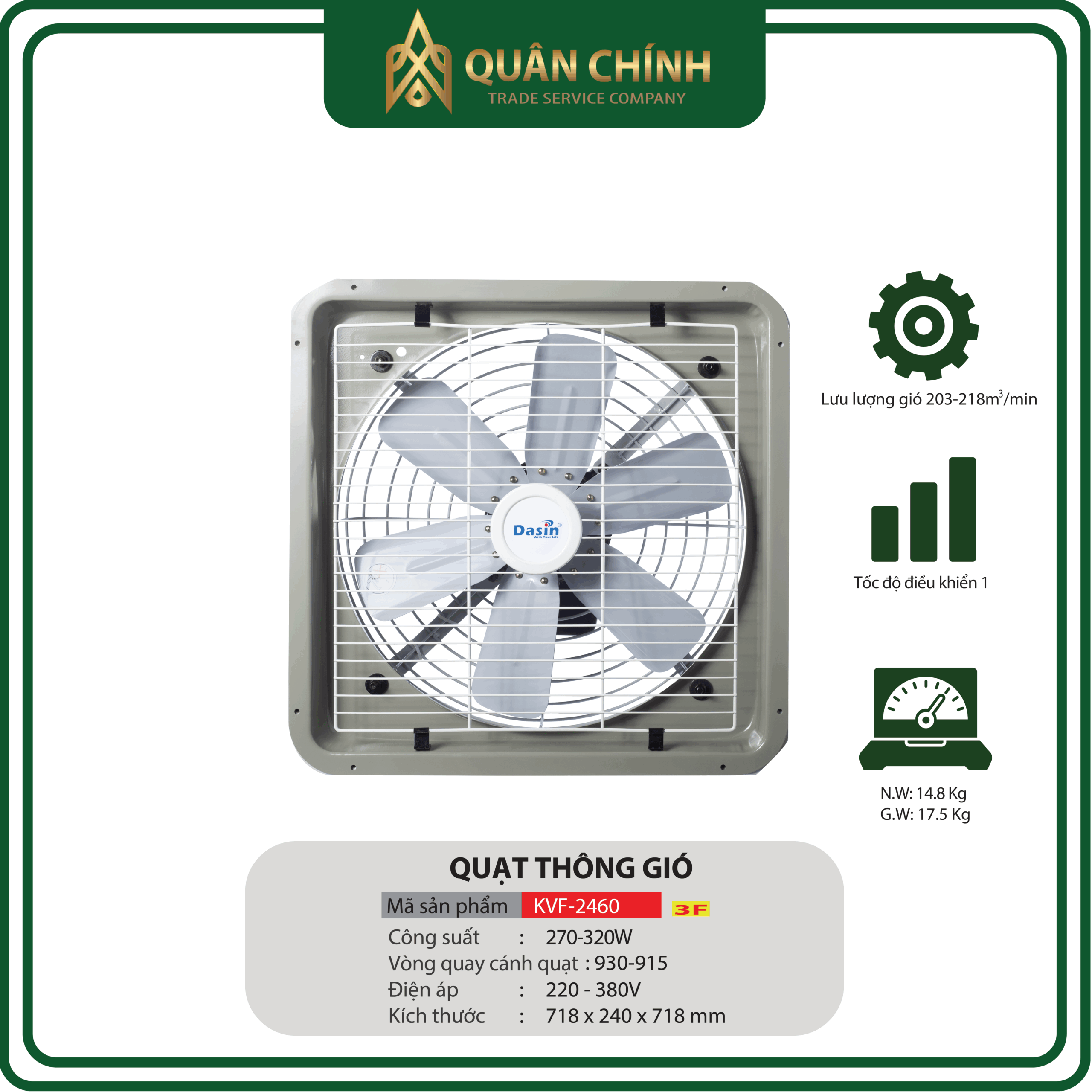 Quạt thông gió KVF – 2460 với đường kính cánh lên đến 600 mm được làm bằng thép rất chắc chắn, kết hợp độc đáo nhất đó chính là motor sử dụng hoàn toàn bằng dây đồng nguyên chất 100% với số lượng dây đồng lên đến hàng nghìn sợi, Kích thước vuông 715 x 240 x 715 mm thích hợp gắn vào tường, thân quạt được làm bằng thép giúp khả năng chịu nhiệt, chịu lực vô cùng lớn giúp quạt bền hơn khi sử dụng, với lưu lượng gió đạt 203 m3/phút